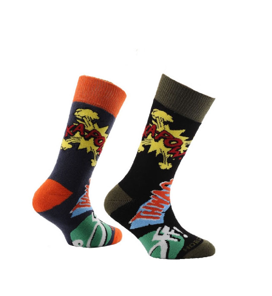 Diese Kindersocken sind ideal für alle Outdoor- und Freizeitaktivitäten in der Farbe: KAPOW! Print in schwarz & airforceblau.