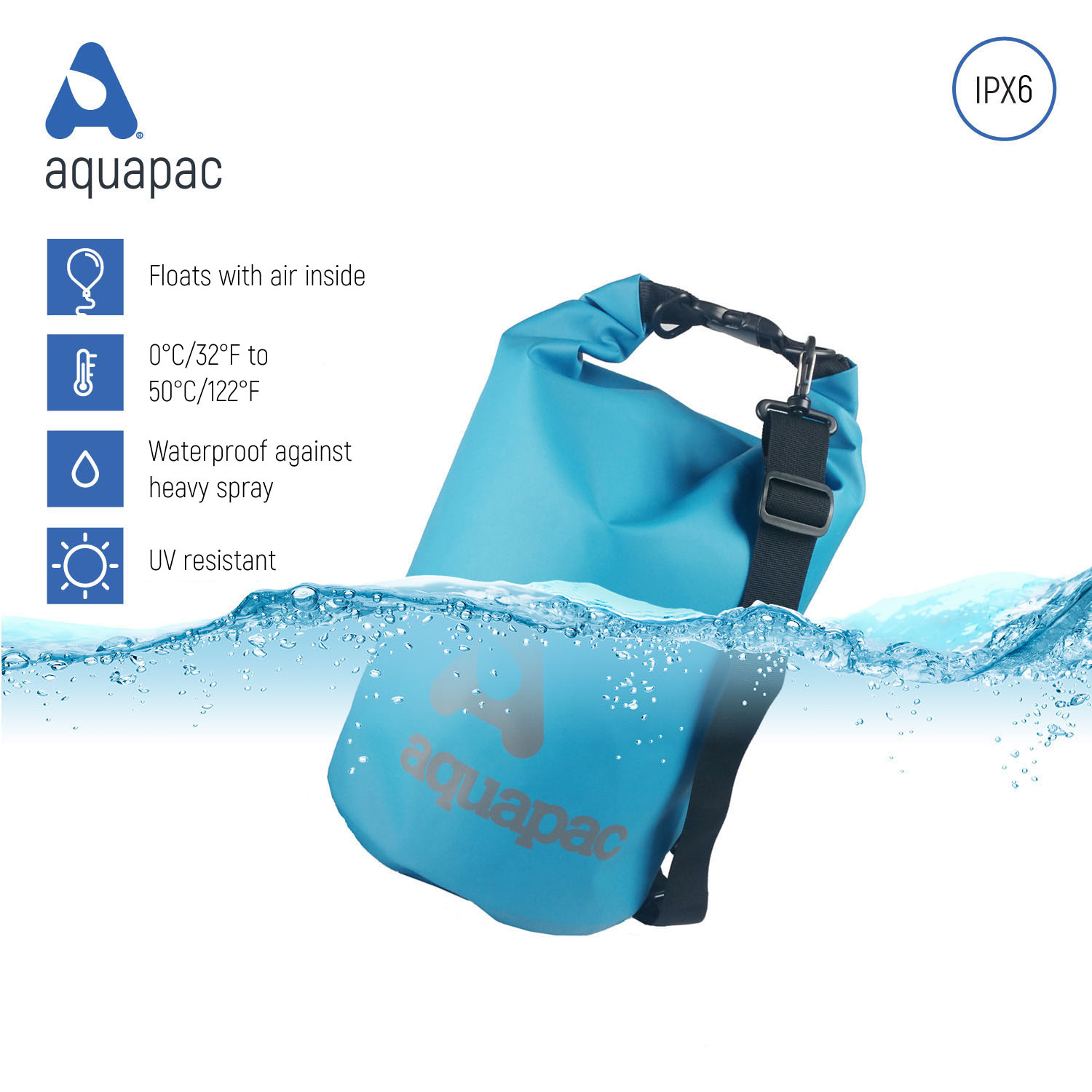TrailProof™ wasserdichte, robuste und funktionale Drybags mit verstellbarem Schultergurt für Wassersport, Paddeln, Segeln, Wandern oder Expeditionen. Feartures: Aquapacs TrailProof™ Drybags mit Rollsiegelverschluss und Schultergurt. in 4 Größen: 7 Liter, 15 Liter, 25 Liter oder 70 Liter. natürlich wasserdicht nach IPX 6. Für Rafting, Camping, Expeditionen, Segeln oder Outdoor-Touren. Überall, wo es härter zugeht. Und wo größere Ausrüstungsgegenstände an nasse Plätze transportiert werden müssen. aus robusten 500D-Vinyl gefertigt, um allen Stößen standzuhalten, abriebfest. sehr leicht: 213 Gramm, 345 Gramm, 427 Gramm oder 764 Gramm. verschlossenes Rollsiegel als Tragegriff nutzbar. wahlweise lieferbar in coolem acid green oder cyan blue. Gut sichtbar sein, wenn du unterwegs bist. Durch die hellen Farben sind die Dry Bags leicht zu erkennen unter einem großen Berg anderer Taschen und die Tasche heizt sich in der Sonne nicht so stark auf.Inhalt nicht im Lieferumfang enthalten. Technische Daten: in 4 Größen: 7 Liter, 15 Liter, 25 Liter oder 70 Liter leicht: 243 Gramm, 375 Gramm, 457 Gramm oder 794 Gramm. aus 500D verstärktem Vinyl. mit verstellbarem Schultergurt Die Maße (Verschluss aufgerollt): TrailProof™ Drybag 7 Liter TrailProof™ Drybag 15 Liter TrailProof™ Drybag 25 Liter TrailProof™ Drybag 70 Liter Maße 7 Liter: Höhe (gerollt) 280mm, Durchmesser: 180mmMaße 15 Liter: Höhe (gerollt) 380mm, Durchmesser 240mmMaße 25 Liter: Höhe (gerollt) 500mm, Durchmesser: 240mmMaße 70 Liter: Höhe (gerollt) 760mm, Durchmesser 320mm Unsere Kategorisierung: Wasserdicht: Die Taschen der IPX6-Norm widerstehen kurzem Untertauchen und schwimmen auf der Wasseroberfläche, ohne das ihr Inhalt feucht wird. Sie sind geeignet für Reisen, Wandern, Segeln, Paddeln, Raften oder anderen Wassersportaktivitäten sowie allen Aktivitäten rund um Strand und Meer oder Schnee und Regen. Seit Jahren ist das Rollsystem ein industrieller Standard, um Taschen wasserdicht zu verschließen. Wir benutzen speziell gehärtete Säume, um ein straffes Aufrollen zu gewährleisten. Solange du den Verschluss dreimal aufrollst, kann kein Wasser eindringen, der TrailProof™ Drybag ist dann auch gegen gelegentliches Eintauchen geschützt. Noch ein Tipp: Je mehr Luft du einschließen kannst, desto dichter hält das Rollsystem. Für Unterwasseraktivitäten ist die Tasche nicht geeignet. Was hält das Wasser draußen? Du rollst das obere Ende der Tasche dreimal auf und schließt die Klickverschlüsse. Schon kann kein Regen oder Spritzwasser mehr eindringen.Im Einsatz: Du kannst eine Menge Gepäck wasserdicht in dieser Tasche verstauen. Wenn du unterwegs bist, zum Beispiel an Bord gehst, bei der Rafting-Tour, beim Camping oder bei Expeditionen wie der Ausrüstung eines Basis-Camps. Die Tasche ist leicht, so dass du allein schon dadurch mehr einpacken kannst, statt auf das letzte Gramm achten zu müssen, wenn es schwer wird. Und zum komfortableren Tragen haben wir einen Schultergurt spendiert. Und wenn es regnet oder es einmal etwas rauher wird: Es kommt kein Wasser in die Tasche. Abends hast du immer noch trockene Sachen, wenn es zum Essen geht oder du gemütlich den Tag ausklingen läßt. Wo auch immer. Etwa am Lagerfeuer.