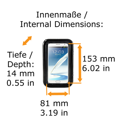- passt für Geräte bis zu einer Größe von maximal und exakt 153 x 81 x 14mm. Ein Millimeter mehr ist zuviel, da der Case nicht mehr korrekt schließt und undicht sein kann.
