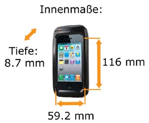 - passt für Geräte bis zu einer Größe von maximal und exakt 116 x 59,2 x 8,7 mm, ein Millimeter mehr ist zuviel.