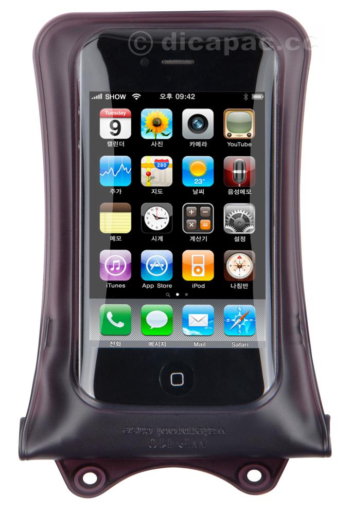 Sie haben ein iPhone™ und möchten es überall mit hinnehmen. Wenn Sie oft und bei jedem Wetter draußen unterwegs sind oder auf dem Wasser, kennen Sie die Probleme: Wasser, Sand und Schmutz setzen dem Gerät zu. So packen Sie einfach Ihr Gerät ins Dicapac. Und alles ist sicher. Sprech- und Hörqualität sind nicht beeinträchtigt, der Empfang ebenfalls nicht. Und selbst der Touchscreen funktioniert. Und auf der Rückseite haben wir eine spezielle klare Foto-Folie eingeschweißt. So können Sie wie gewohnt mit ihrem Smartphone fotografieren.