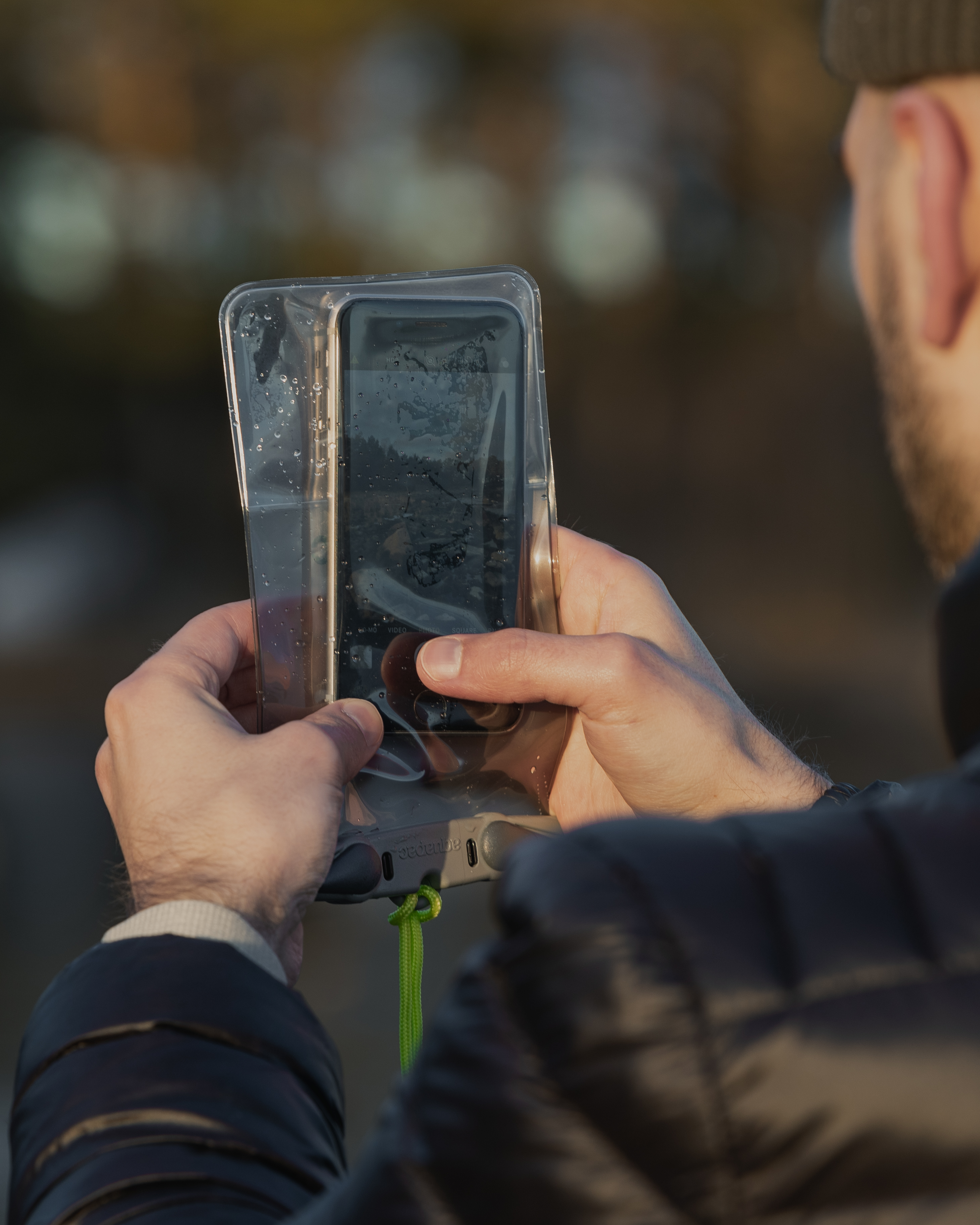 - Den Smartphone Case 358*: Mit der mitgelieferten Schlaufe um den Hals gehängt, kann dem guten Stück auch bei schlechtem Wetter nichts passieren. Sie haben es immer griffbereit um den Hals. Sie telefonieren durch die Folie ohne Qualitätseinbußen, auch in Notfällen. Durch die Lenzflexfolie auf der Rückseite können Fotos geschossen werden, etwa um den Schnappschuss eines Eisvogels am Ufer festzuhalten - ohne das Sie ihr Smartphone den Wetterunbillen oder der überschwappenden Welle aussetzen müssen.