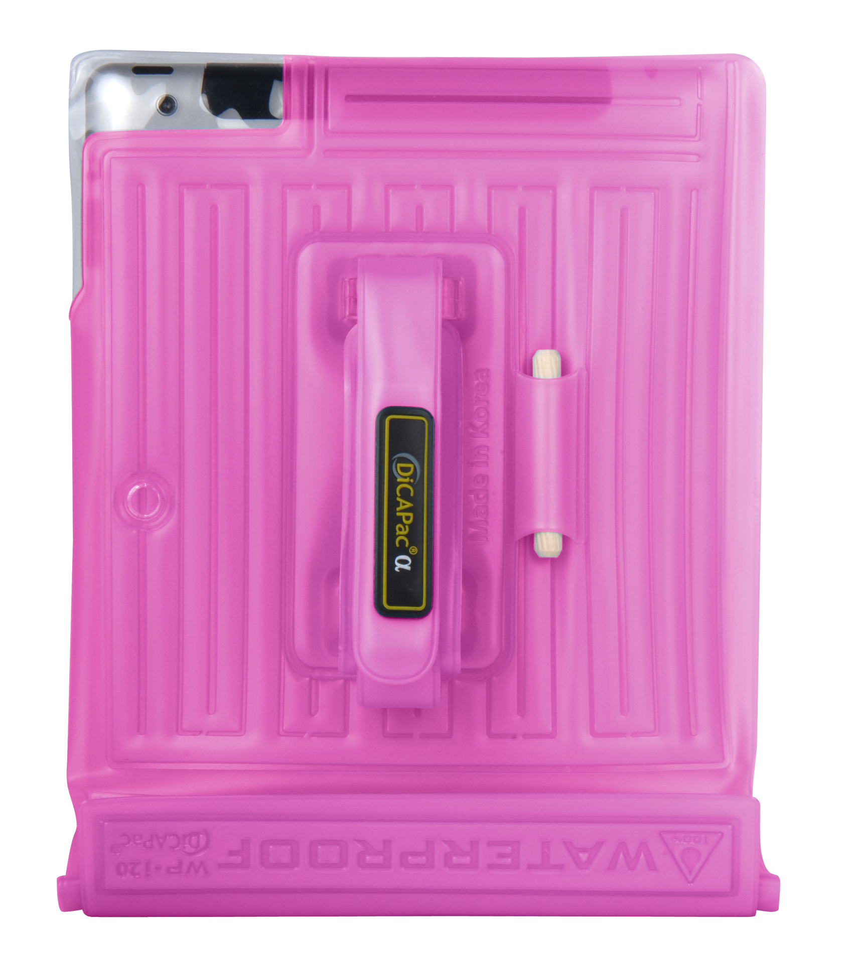 - den iPad ™ -Case WP-i20*, auch ganz in pink: die kleineren iPads ™ oder Tablets anderer Hersteller vergleichbarer Cases passen in diese wasserdichte und tauchbare Tasche. Der Touchscreen funktioniert, ebenso die Kamera- und Videofunktion. Ein integriertes Luftkissen sorgt dafür, dass das Tablet nicht auf den Grund sinkt.