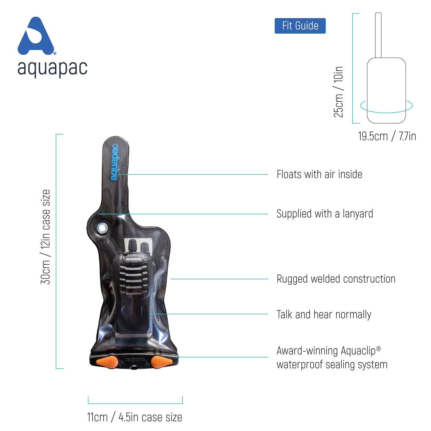 Sie haben ein Handfunkgerät für Ihr Hobby oder im professionellen Einsatz. Ist es wasserdicht? Und ist es schwimmfähig? Falls eine oder beide Antworten ‘Nein’ lauten, brauchen Sie ein 100% wasserdichtes AQUAPAC. Ist Ihr Handfunkgerät mit einem AQUAPAC geschützt, benutzen Sie es wie gewohnt. Der luftdichte Verschluss macht das Funkgerät sogar schwimmfähig, wenn es über Bord geht.