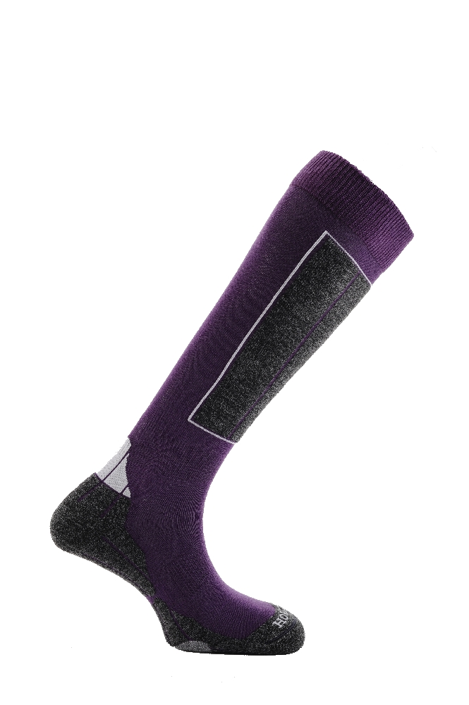 - Superfeine Wolle (Merinowolle) mit Isofil® Polypropylen gemischt in diesen technischen Ski Socken sorgen für Wärme und Komfort in den Farben: lila-anthrazit-weiß.