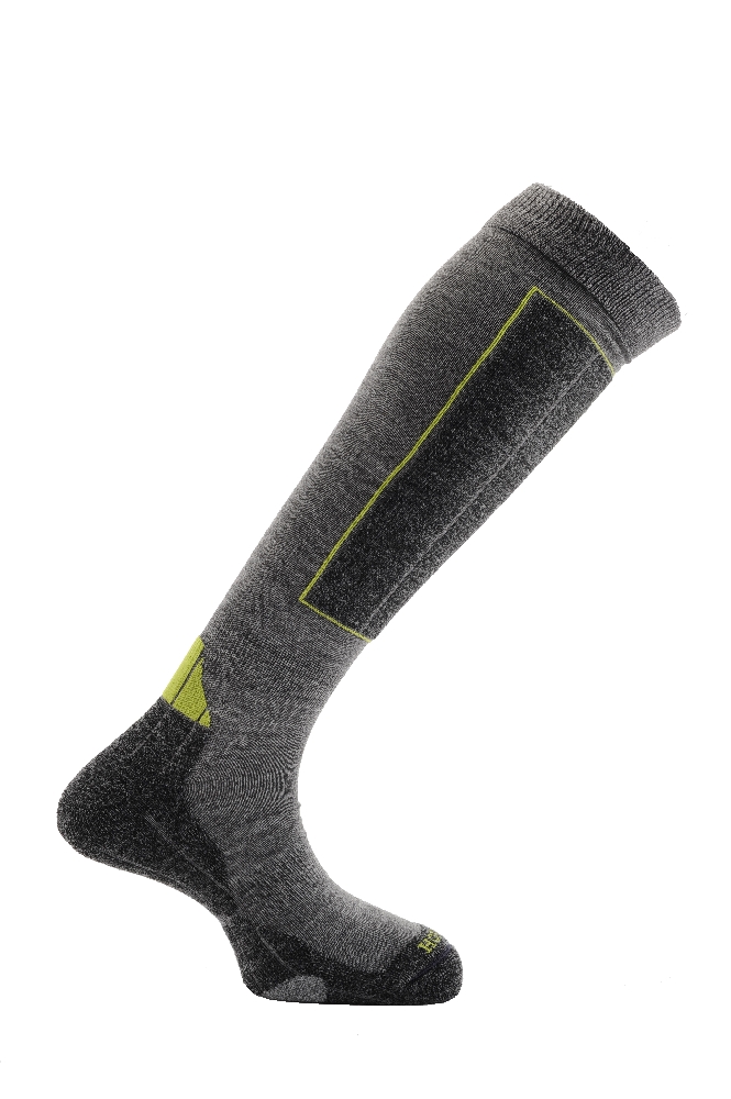 • Superfeine Wolle (Merinowolle) mit Isofil® Polypropylen gemischt in diesen technischen Ski Socken sorgen für Wärme und Komfort in den Farben: grau-anthrazit-lime.