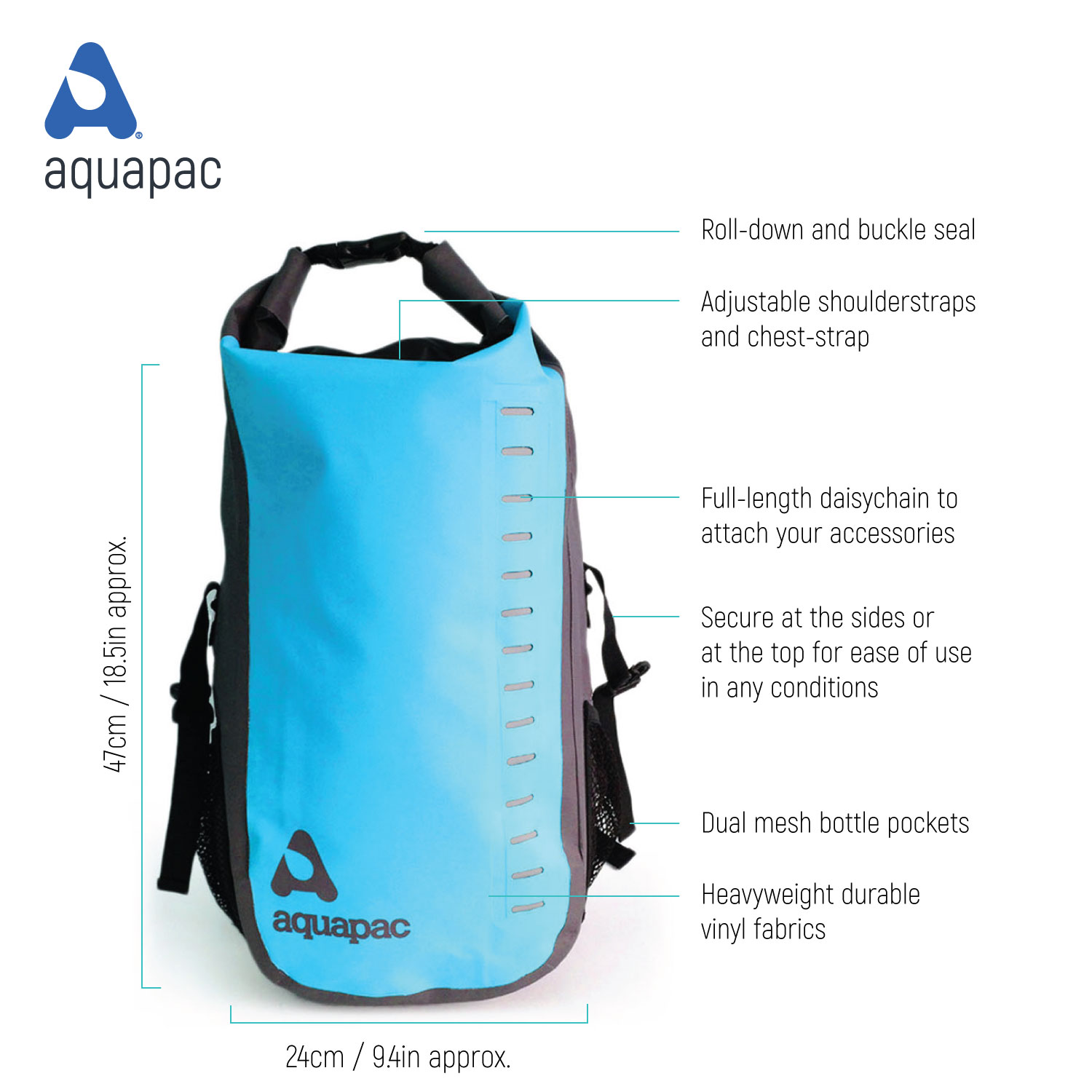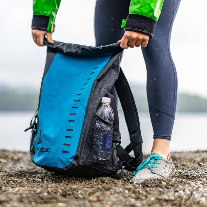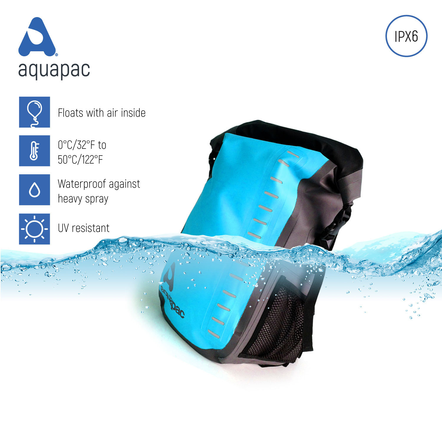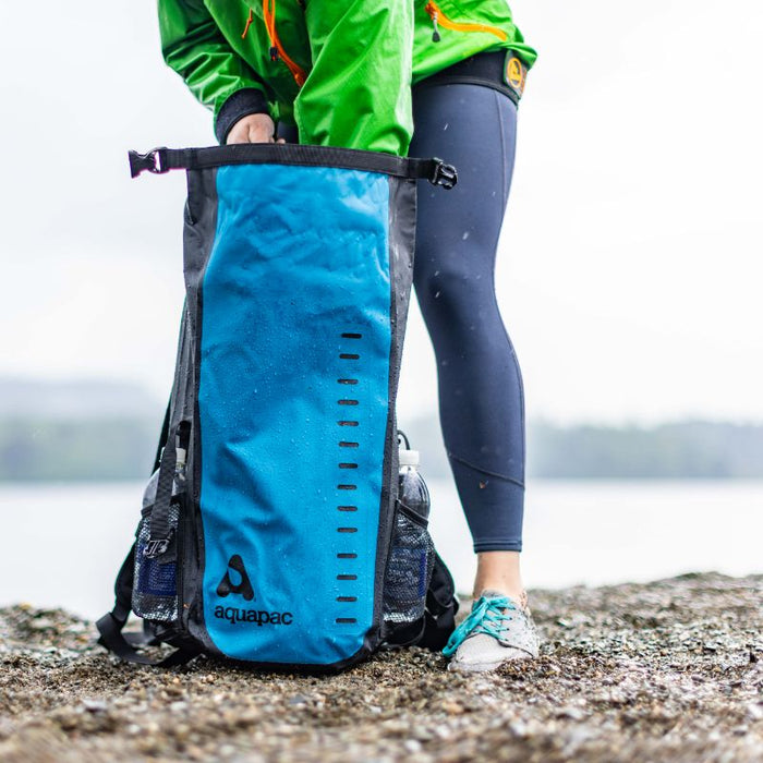 Mit dem neuen, wasserdichten Rucksack von Aquapac kann Ihnen das nicht mehr passieren. Das Material ist wasserdicht, die Nähte - Schwachstelle vieler Rucksäcke - geklebt. Das Dreifach-Rollsystem verschließt den Rucksack wasserdicht, denn wie oft ist das Material von Rucksäcken wasserdicht, nicht aber seine Reißverschlüsse.